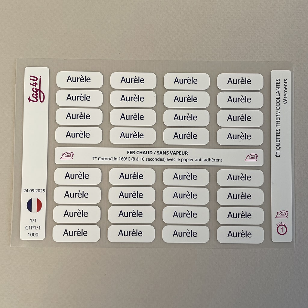 En quelques secondes, avec un simple fer à repasser, elles se fixent solidement sur le tissu pour ne plus bouger, même après de nombreux lavages. Que ce soit pour l’école, la crèche, les colonies, les maisons de retraite ou les vêtements professionnels, elles permettent d’identifier facilement chaque vêtement et d’éviter les pertes ou les échanges. Discrètes, durables et personnalisables, elles vous offrent une solution fiable pour retrouver vos affaires en un clin d’œil.